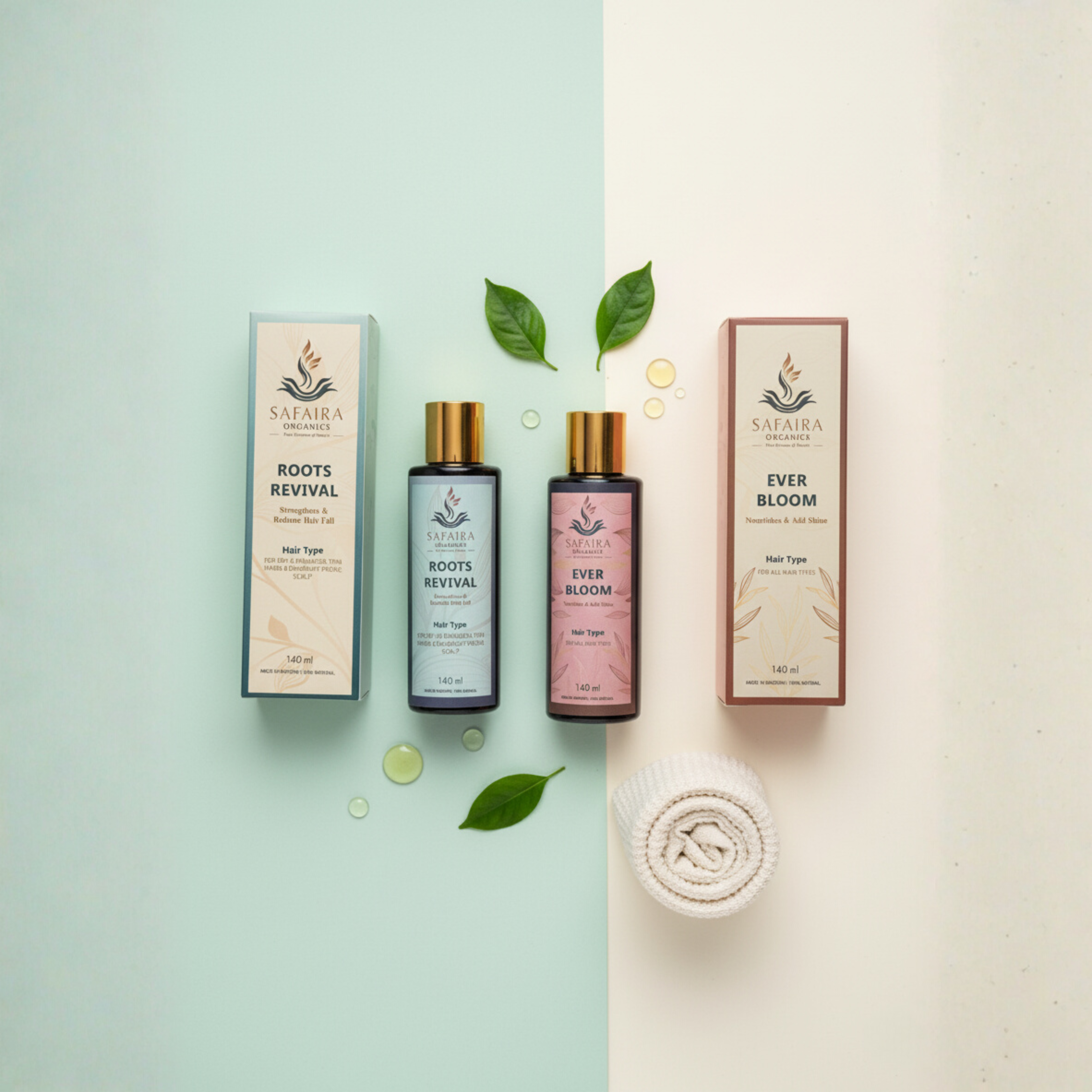 Safaira Organics brings you the perfect duo β Roots Revival & Ever Bloom β Pakistanβs most loved organic hair oil bundle that targets every major hair concern from root to tip.